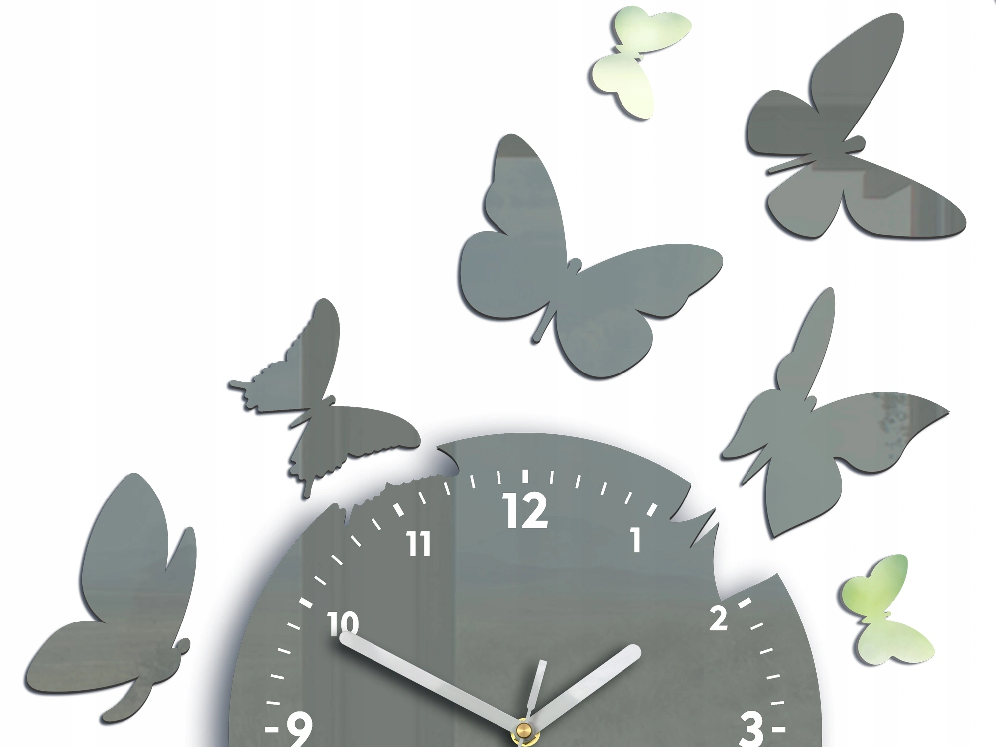 Acrylic glass wall clock BUTTERFLIES 14 GRAY MIRROR..