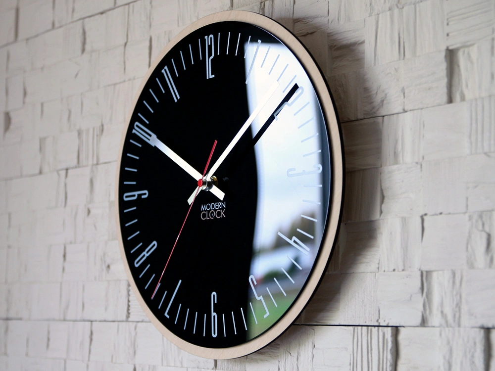 An interesting and stylish wall clock that combines wood and black acrylic glass accents. Its design captivates everyone who looks at it. The clock has a legible dial. It fits perfectly into any interior, it is not only a clock, but also a beautiful decoration for your living room or office. Perfect as a gift.