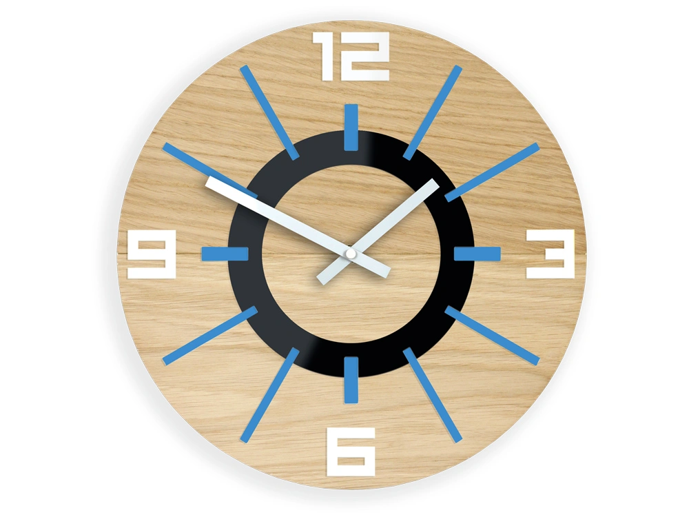 Įdomus ir unikalus sieninis laikrodis ALADDIN WOOD BLUE.