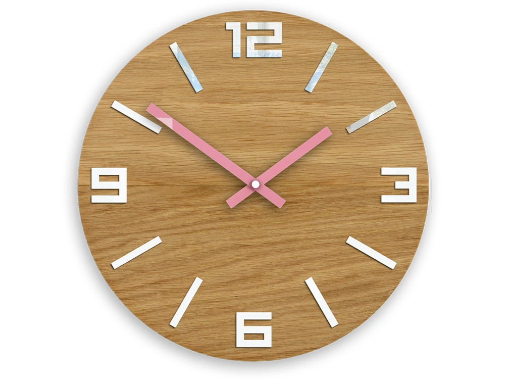 Medinis sieninis laikrodis ARABIC WOOD WHITE PINK.