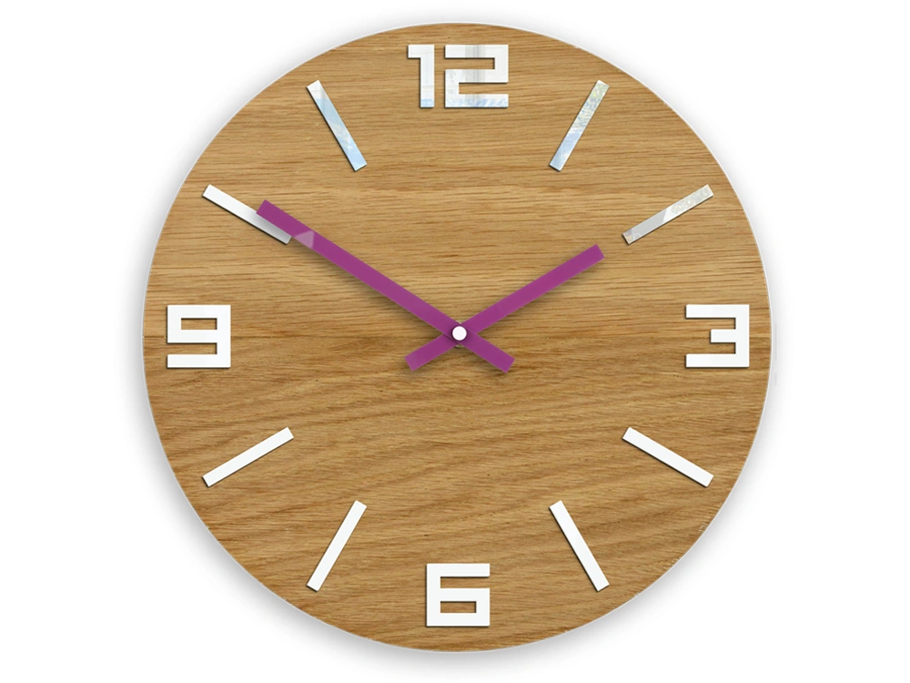 Medinis sieninis laikrodis ARABIC WOOD WHITE PURPLE.