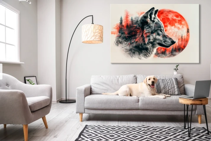 Būkite pirmas aprašęs “Atmosferinis vilko paveikslas raudono mėnulio fone”