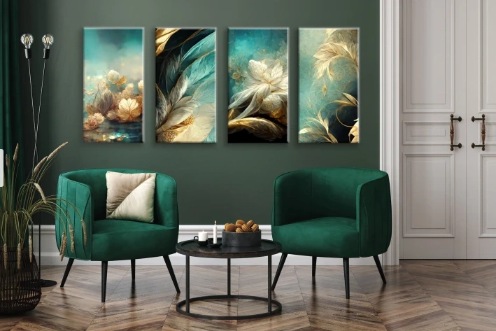 Ar žinojote, kad su viena apdaila galite visiškai pakeisti interjerą? Keturių dalių paveikslai – tai temą ar spalvą atitinkančios dekoratyvinių spaudinių kompozicijos, kurias galite laisvai išdėlioti ant sienų. Pasinaudokite mūsų įkvėpimais arba papasakokite savo istoriją, pakabindami kiekvieną iš 4 elementų, kaip jums patinka. Nustatykite savo tendencijas kurdami unikalią estetinę patirtį!