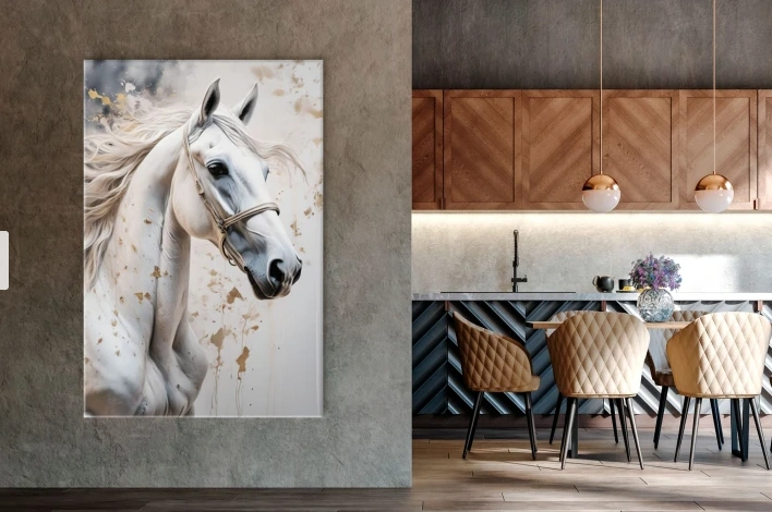 Būkite pirmas aprašęs “Baltas arklys abstrakčiame fone”