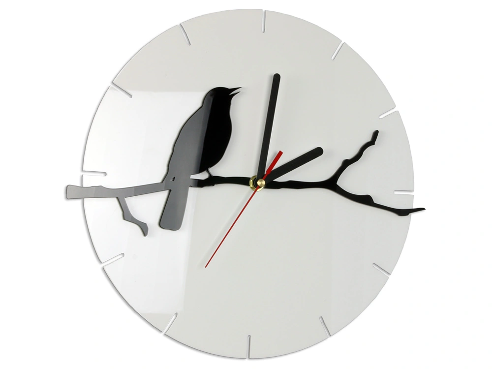 Akrilo stiklo klijuojamas sieninis laikrodis BIRD WHITE&BLACK.