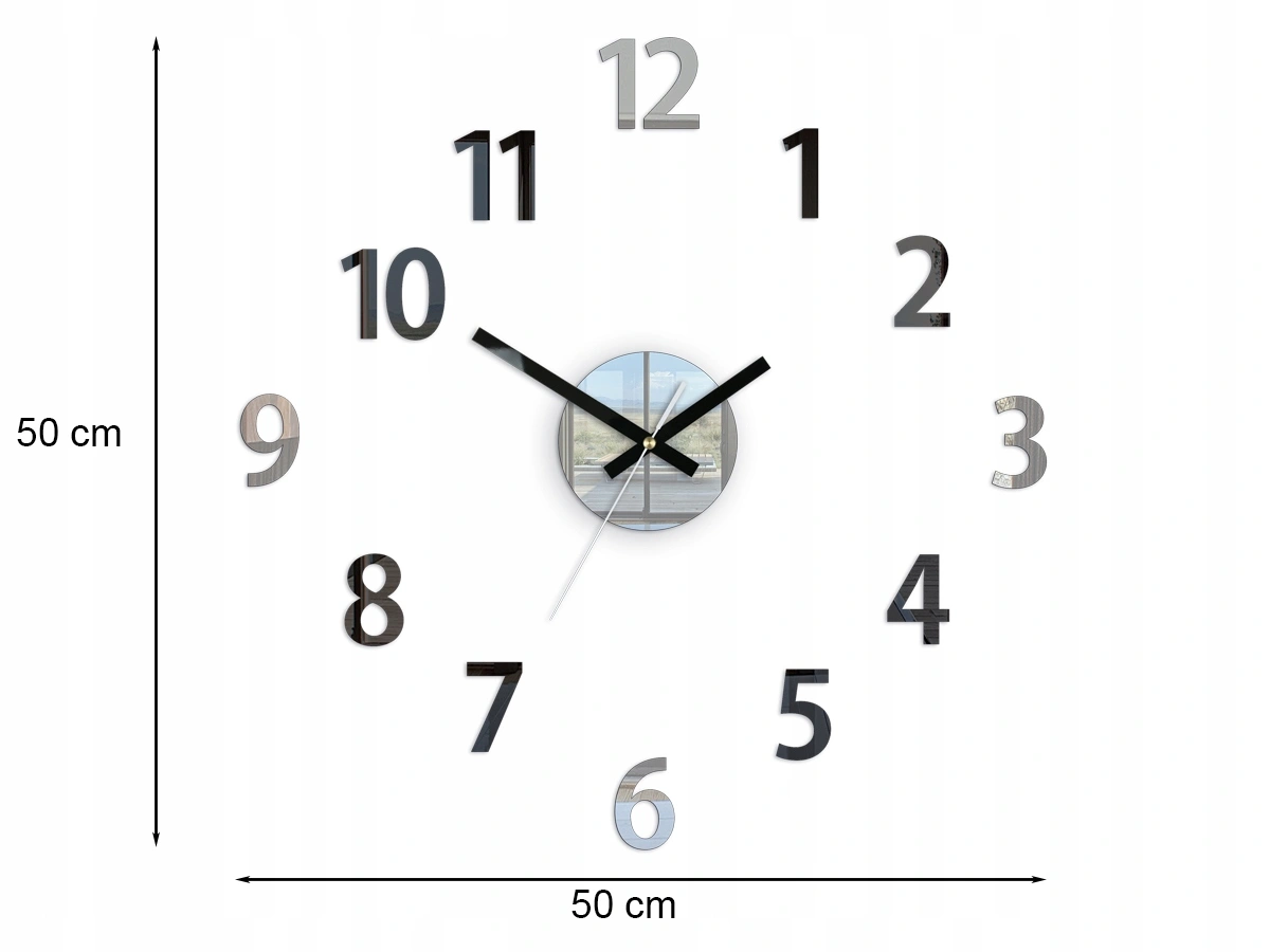 Ciferblatas su rodyklėmis skirtas tvirtinimui ant kabliuko. Dekoratyviniai elementai tvirtinami prie sienos naudojant montavimo juostą. Kiekvienas elementas yra klijuojamas juostele. Laikrodis turi šabloną – jo dėka galėsite tiksliai išdėstyti elementus ant sienos. Laikrodis paruoštas surinkimui, nereikia pirkti papildomų komponentų.