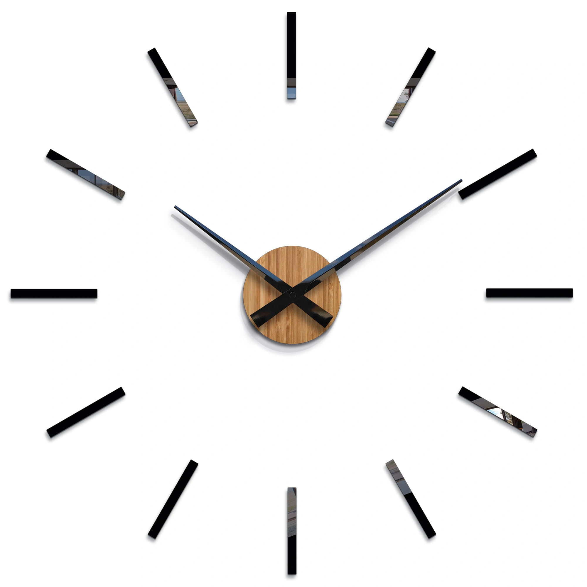 Ciferblatas su rodyklėmis skirtas tvirtinimui ant kabliuko. Dekoratyviniai elementai tvirtinami prie sienos naudojant tvirtinimo juostą. Kiekvienas elementas yra klijuojamas lipnia juosta. Laikrodis turi šabloną – jo dėka galite tiksliai išdėlioti elementus ant sienos.