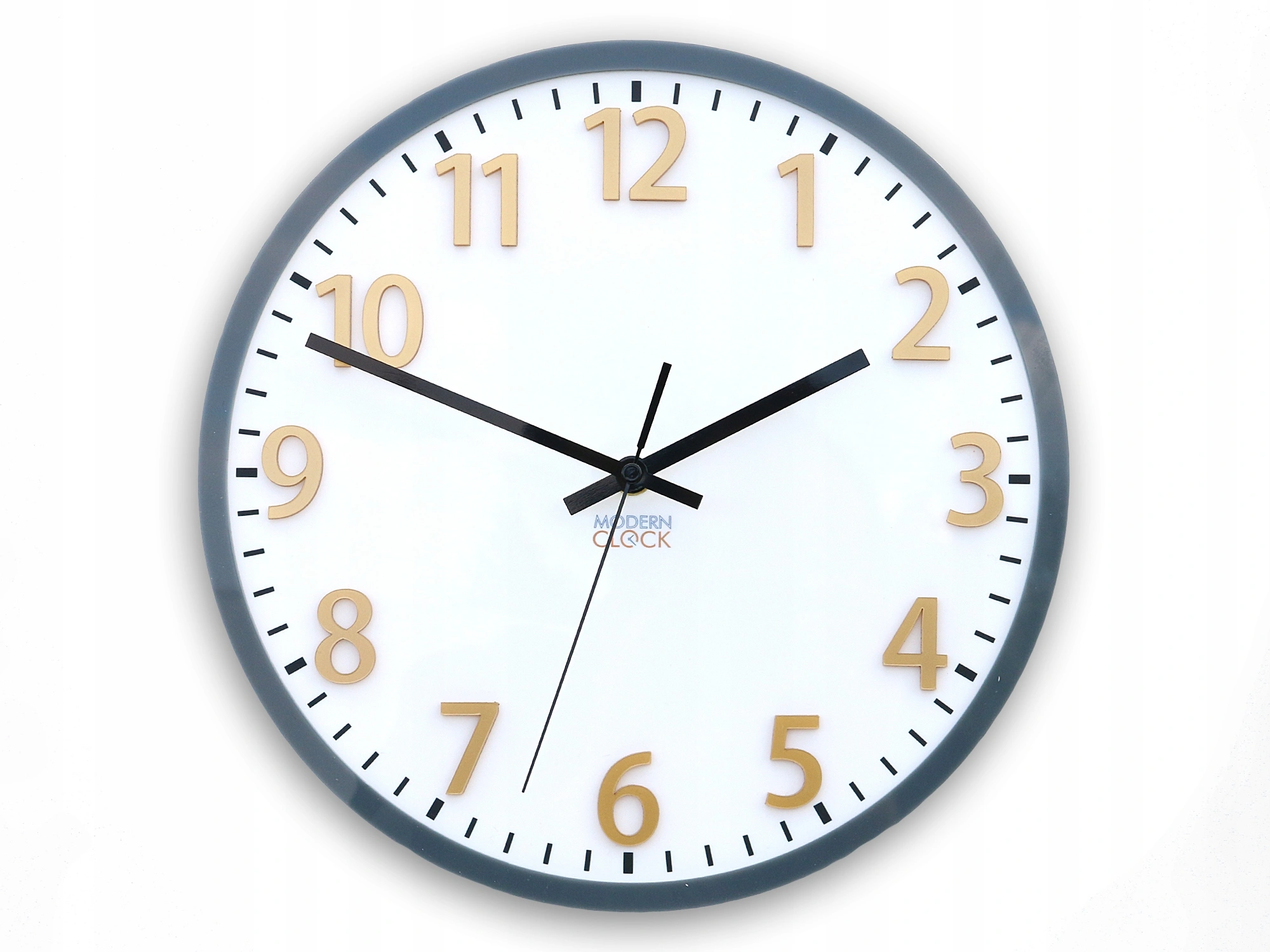 Tai balto ciferblato su trimačiais metalinio aukso skaitmenimis derinys, visas papuoštas gražiu blizgančiu pilku apvadu. Pramoninių spalvų derinys suteikia nepaprastą galutinį efektą. Jo dizainas žavi visus, kurie į jį žiūri. Laikrodis turi įskaitomą ciferblatą. Puikiai dera prie bet kokio interjero, tai ne tik laikrodis, bet ir graži Jūsų buto, biuro ar darbo kambario puošmena. Puikiai tinka kaip dovana.