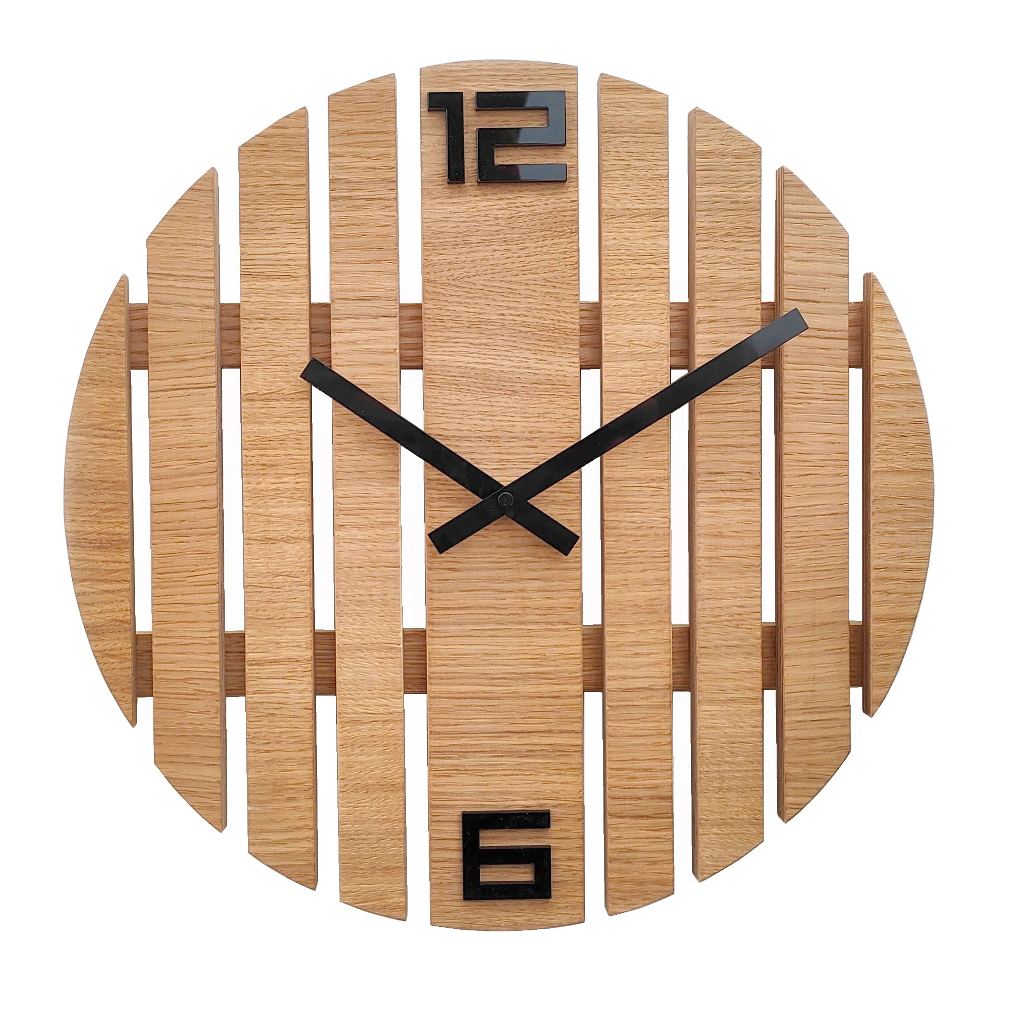 Medinis sieninis laikrodis LAMELE. Laikrodis su dviem juodais skaitmenimis iš akrilinio stiklo, savo paprastumu ir grožiu žavi kiekvieną, kuris į jį žiūri. Originali svetainės ar biuro puošmena, puiki dovanos idėja.