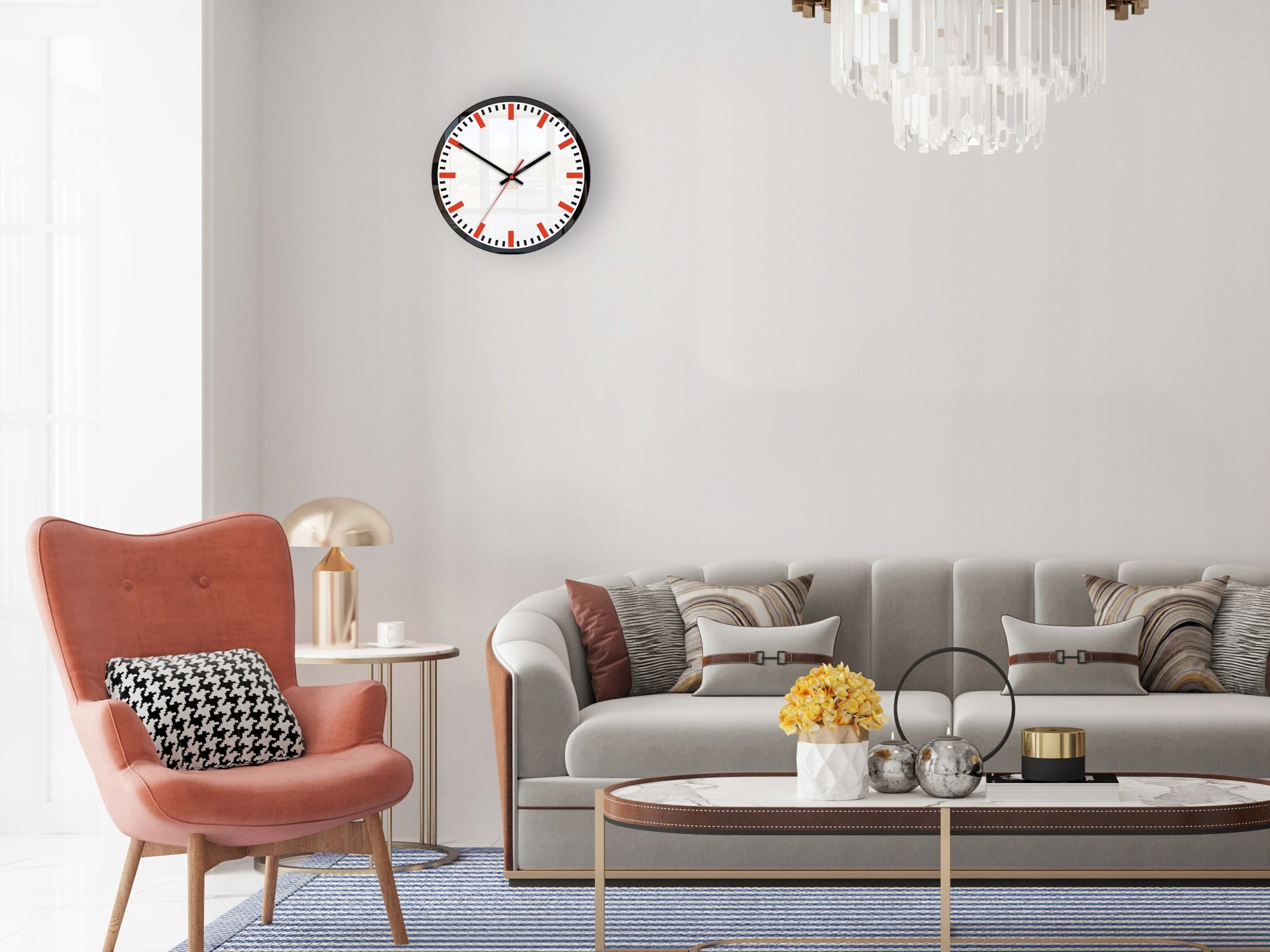Klasikinis laikrodžio modelis iš aukštos kokybės akrilo stiklo su įskaitomu ciferblatu.
