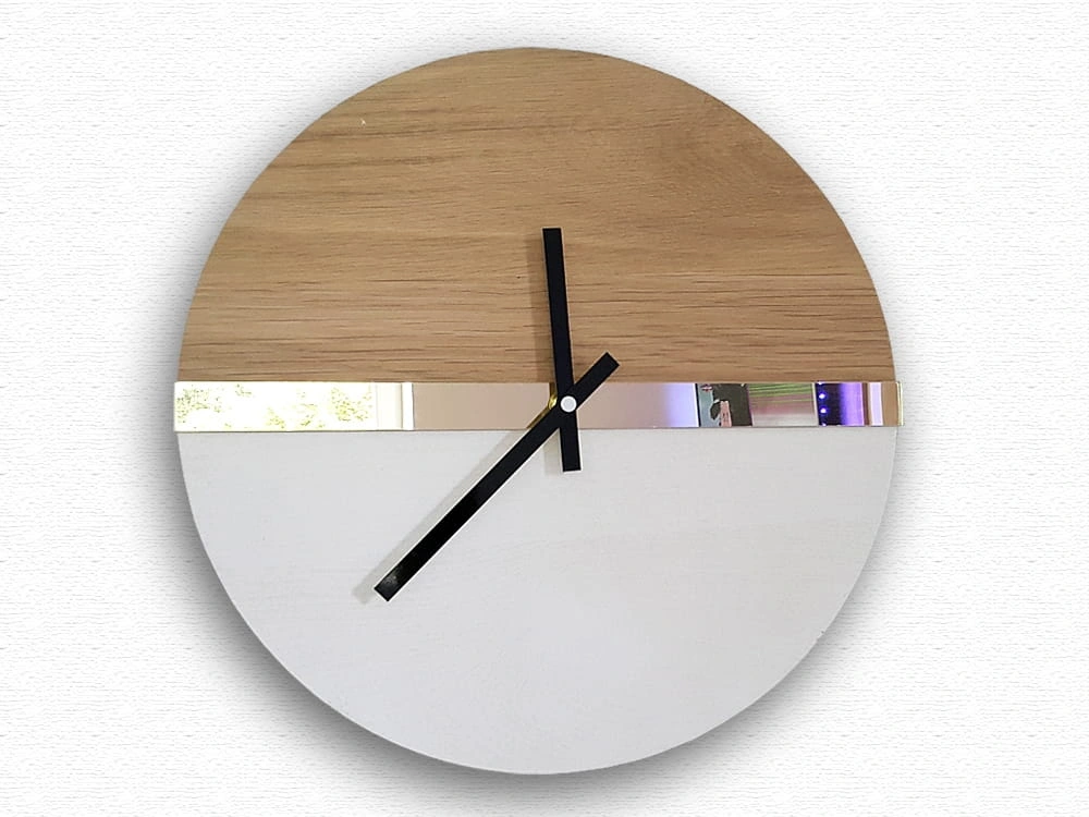 Paprastas, bet klasikinis sieninis laikrodis su sidabrine veidrodine juostele. Atstovauja modernaus minimalizmo stiliui. Kiekvienas laikrodis pagamintas iš aukščiausios kokybės medžiagų. Pasirinkta pirmos klasės mediena. Dėl natūralaus charakterio kiekvienas laikrodžio modelis yra unikalus ir vienetinis.