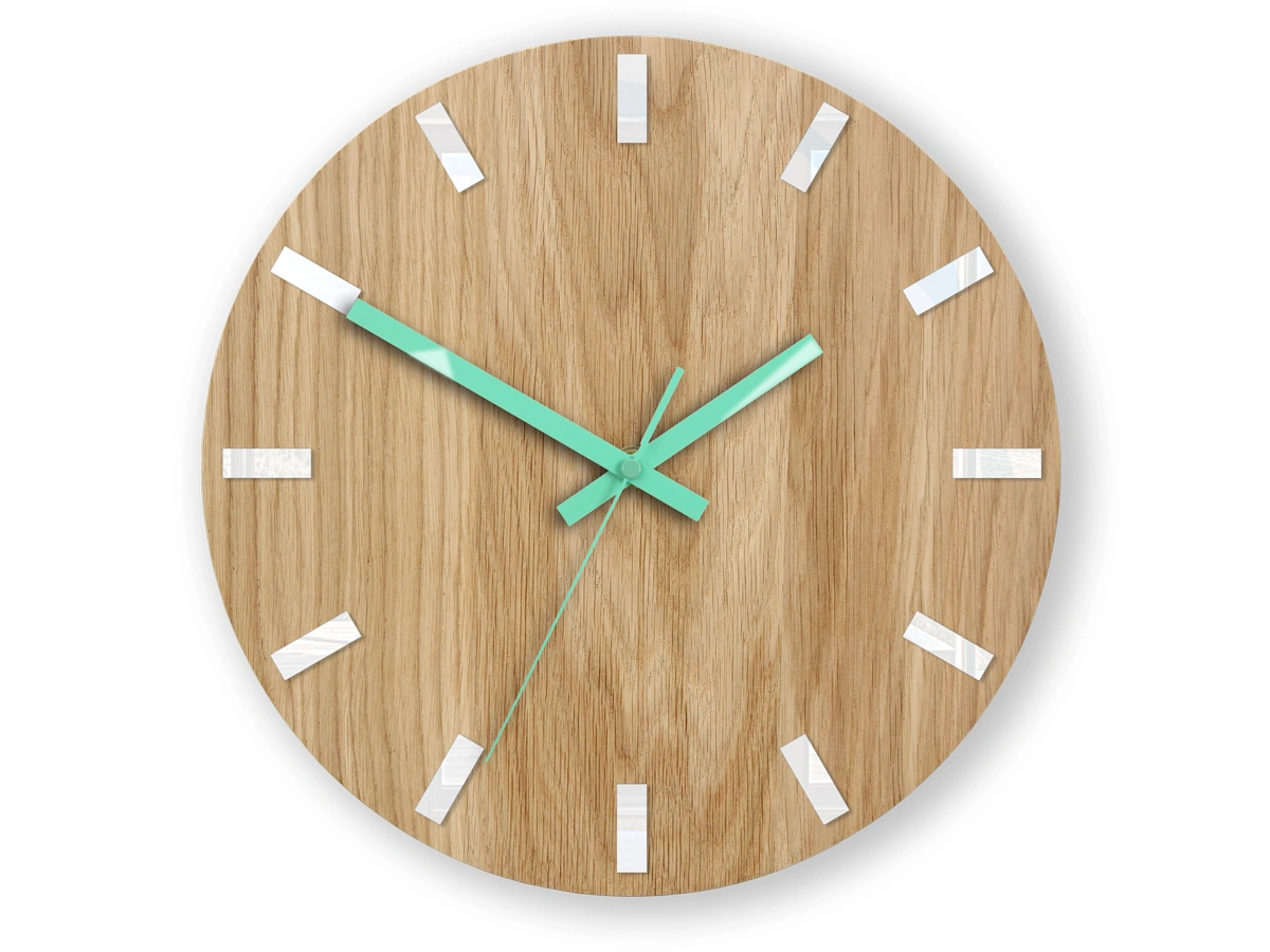 Medinis sieninis laikrodis OAK MINT WHITE.
