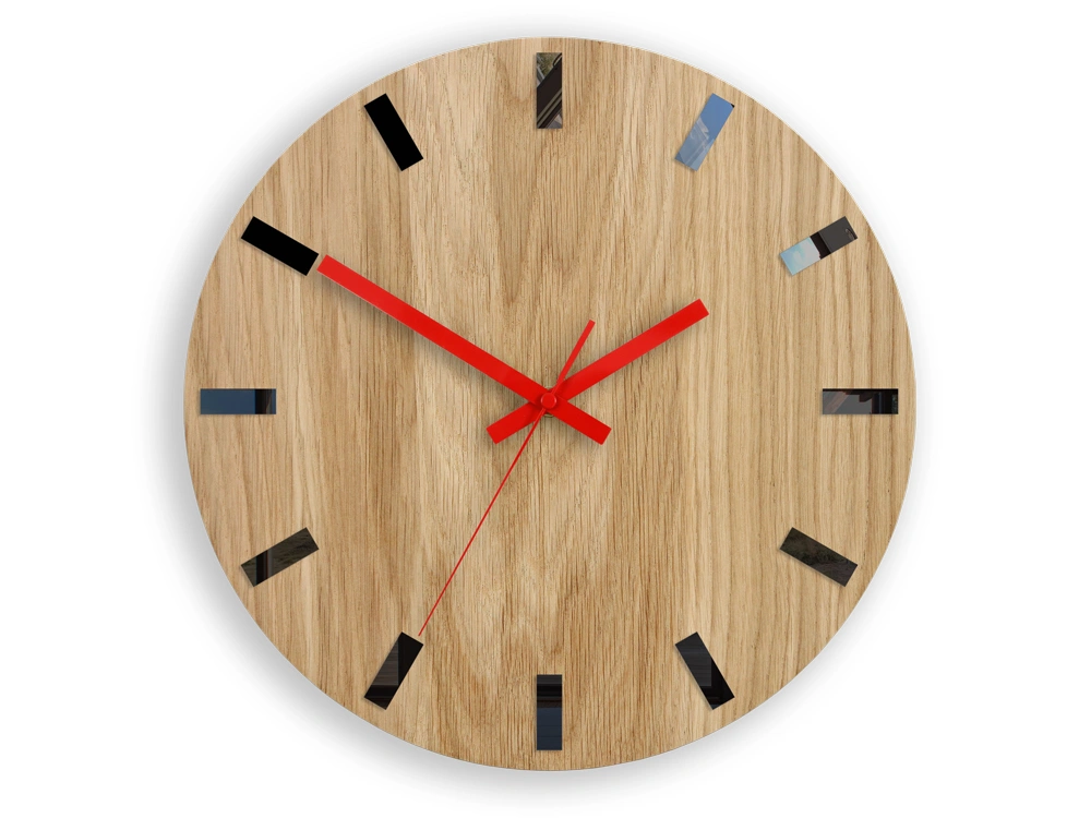 Sieninis laikrodis pagamintas iš 3 mm ąžuolo medienos ir 10 mm MDF plokštės, kuri suteikia jam labai elegantišką ir prašmatnų charakterį. Tai gražus medinis priedas, tinkantis tiek moderniam, tiek tradiciniam interjerui.