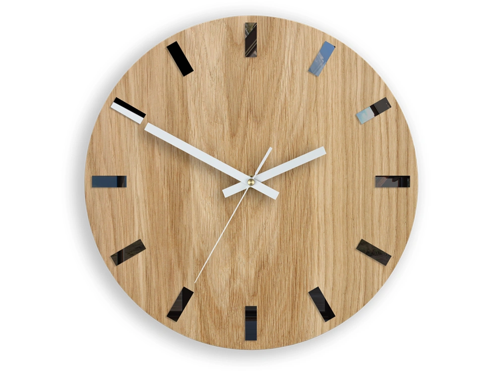 Sieninis laikrodis pagamintas iš 3 mm ąžuolo medienos ir 10 mm MDF plokštės, kuri suteikia jam labai elegantišką ir prašmatnų charakterį. Tai gražus medinis priedas, tinkantis tiek moderniam, tiek tradiciniam interjerui.