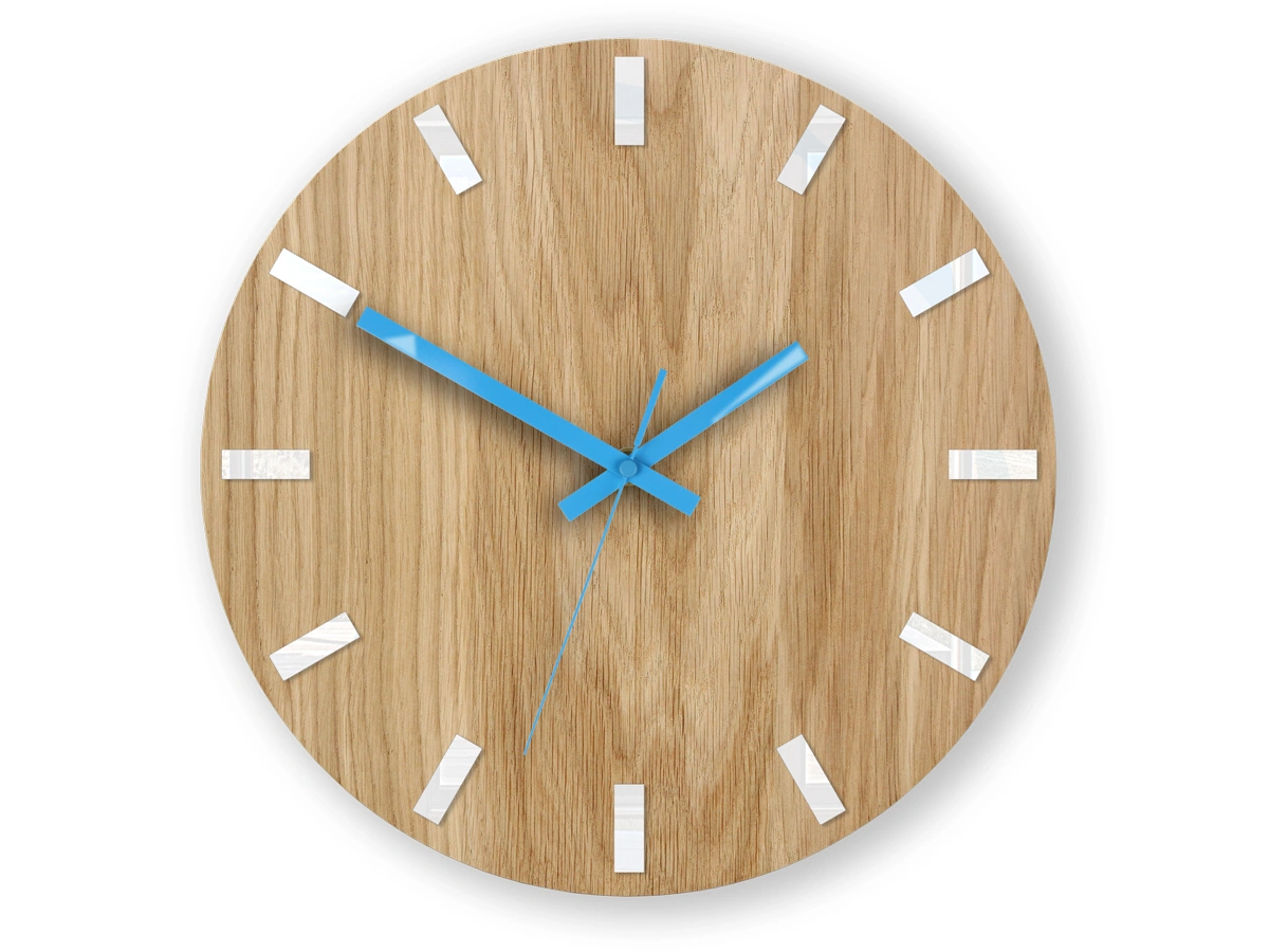 Medinis sieninis laikrodis OAK WHITE&BLUE.