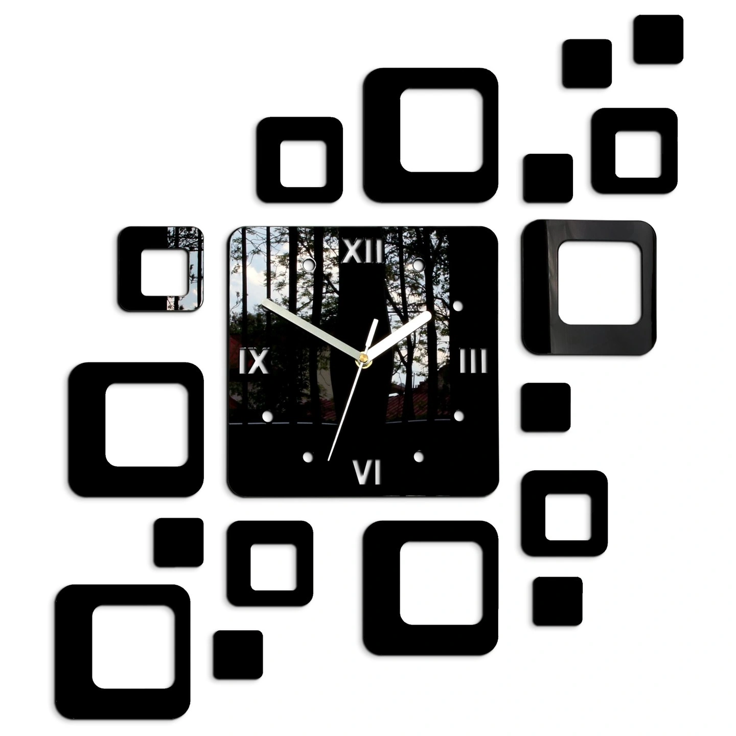 Laikrodis pagamintas iš GLOSSY PMMA akrilo stiklo. Akrilinis stiklas pasižymi modernia estetiška išvaizda, yra lengvesnis ir daug kartų tvirtesnis už natūralų stiklą. Dekoratyvus ir puikiai atspindi saulės šviesą. Dėl atsparumo UV spinduliuotei ir išorės sąlygoms nereikalauja ypatingos priežiūros ir savo savybes išlaiko labai ilgai.