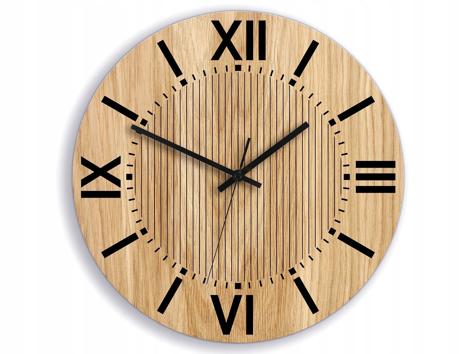 Didelis ir įskaitomas ąžuolinis laikrodis. Jis turi klasikinį apvalų laikrodžio ciferblatą su tiksliai grafiškai pritaikytu valandų žymėjimu. Šis laikrodis pasižymi elegancija ir darbo estetika. Puikiai dera prie bet kokio interjero, tai ne tik laikrodis, bet ir graži Jūsų svetainės, kambario ar biuro puošmena. Puikiai tinka kaip dovana. Kiekvienas laikrodis supakuotas į elegantišką pakuotę.