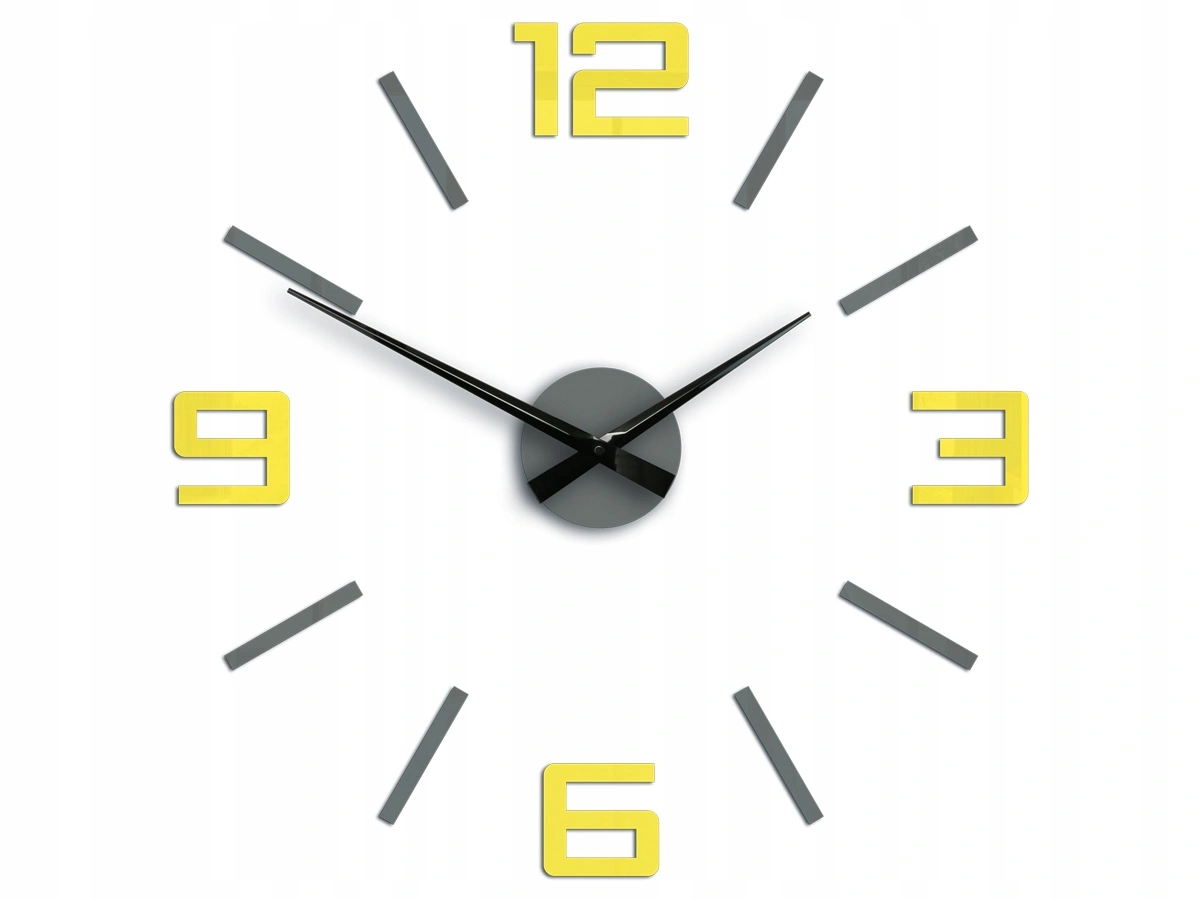 Priklijuojamas sieninis laikrodis SILVER XL YELLOW GRAY.