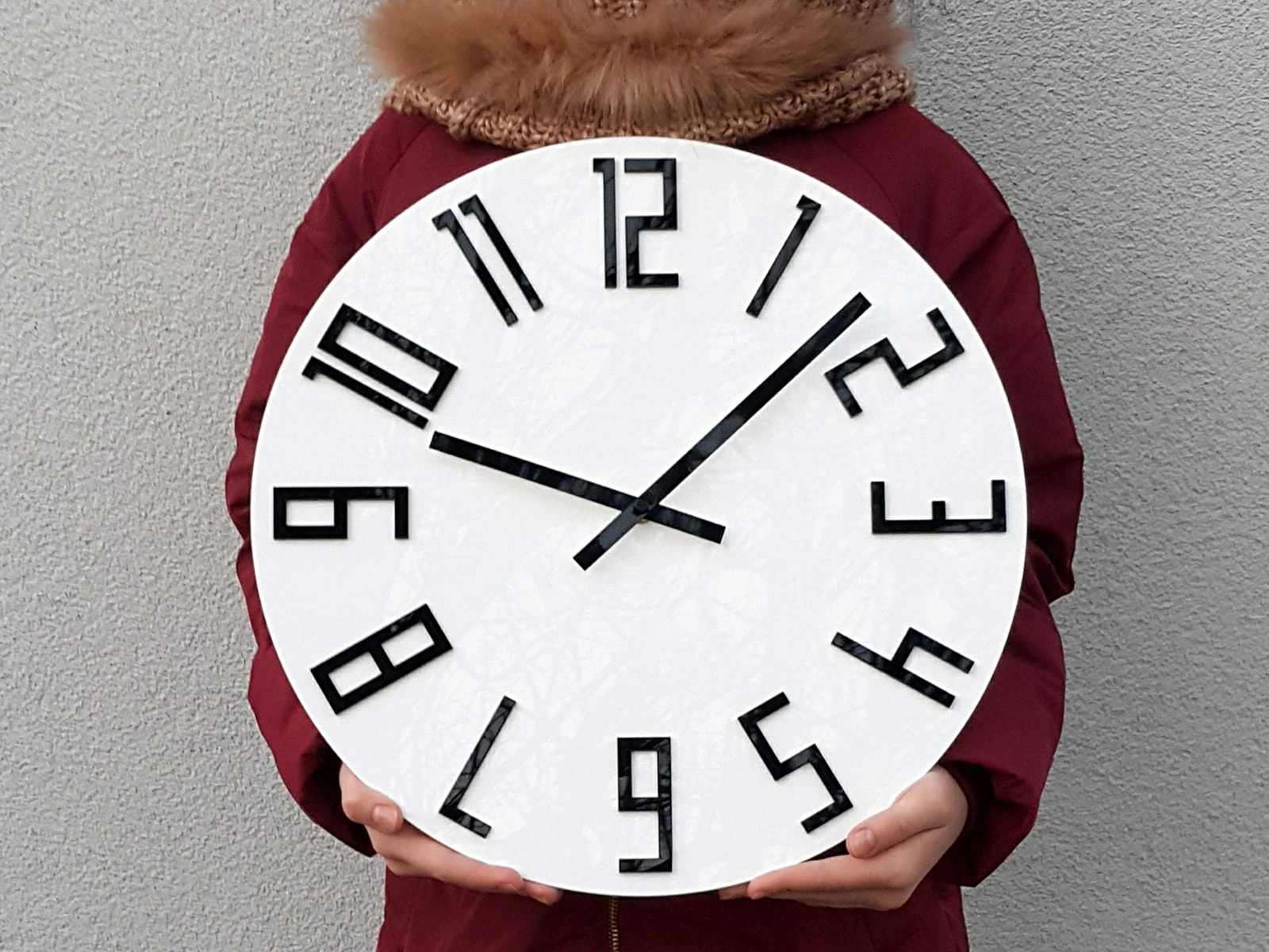 Laikrodžio ciferblatas – baltas, blizgus akrilinis stiklas