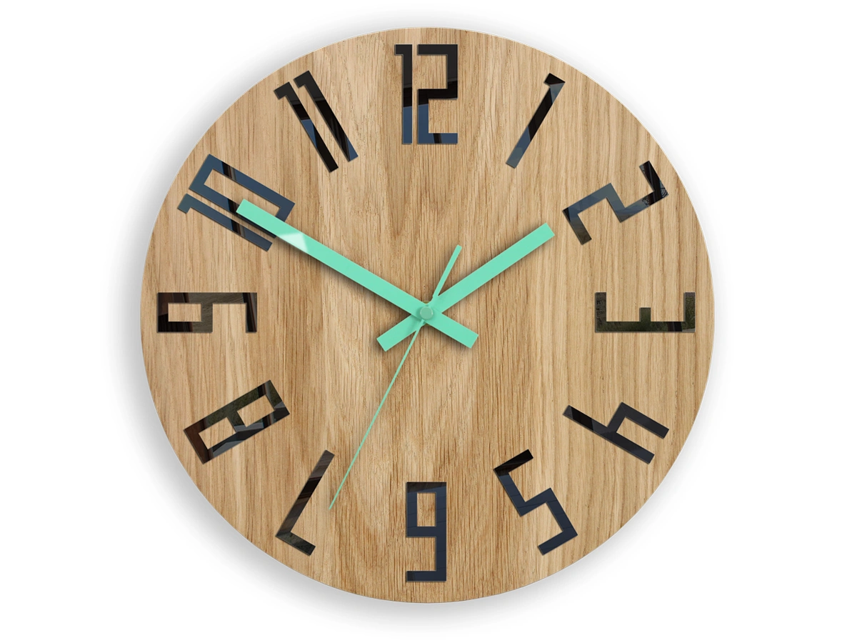 Laikrodis pagamintas iš 100% natūralaus ąžuolo ir MDF plokštės. Ciferblato sluoksnis yra 100% ąžuolas – štai kodėl nėra dviejų vienodų laikrodžių. Kiekviename laikrodyje medienos raštas skiriasi. Laikrodis impregnuotas natūraliu bičių vašku.