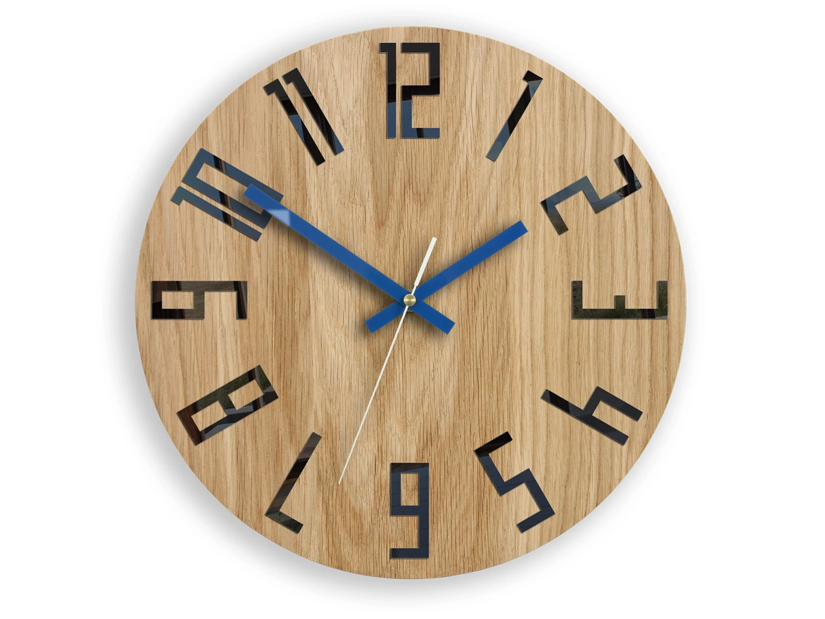 Unikalus ir modernus sieninis laikrodis. Jo paprastumas ir grožis žavi kiekvieną, kuris į jį žiūri. Masyvus unikalus ąžuolinis laikrodis – kiekviena detalė skirtinga. Puikiai dera prie bet kokio interjero, tai ne tik laikrodis, bet ir graži Jūsų svetainės, kambario ar biuro puošmena. Puikiai tinka kaip dovana.