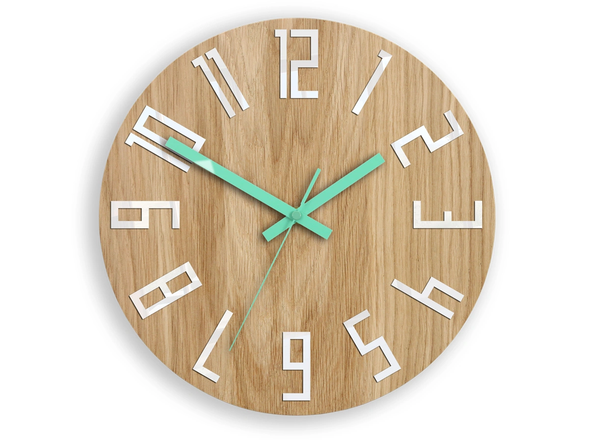 Medinis sieninis laikrodis SLIM WOOD MINT.