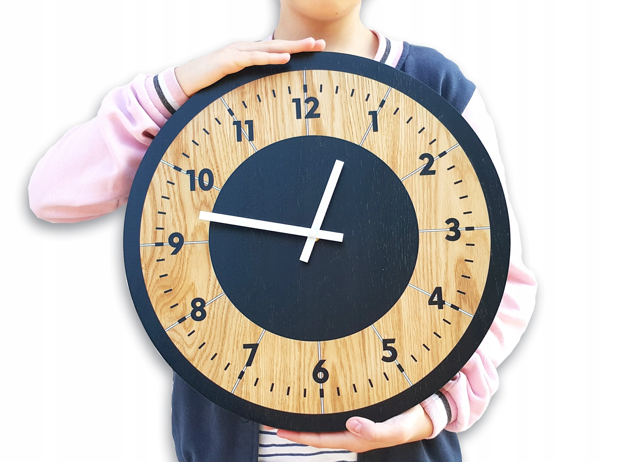 Didelis ir puikiai įskaitomas ąžuolinis laikrodis. Jis turi klasikinį apvalų laikrodžio ciferblatą su tiksliai pažymėtomis valandomis. Šis laikrodis pasižymi elegancija ir darbo estetika. Puikiai dera prie bet kokio interjero, tai ne tik laikrodis, bet ir graži Jūsų svetainės, kambario ar biuro puošmena. Puikiai tinka kaip dovana. Kiekvienas laikrodis supakuotas į elegantišką pakuotę.