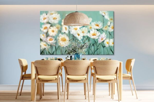 Paveikslas, vadinamas turkio gėlėmis, su įdomia spalvine detale puikiai tiks moderniame ir minimalistiniame interjere. Jei ieškote pastelinių spalvų dekoracijų su baltos ir turkio spalvos elementais, turkio gėlių raštas pateisins Jūsų lūkesčius.
