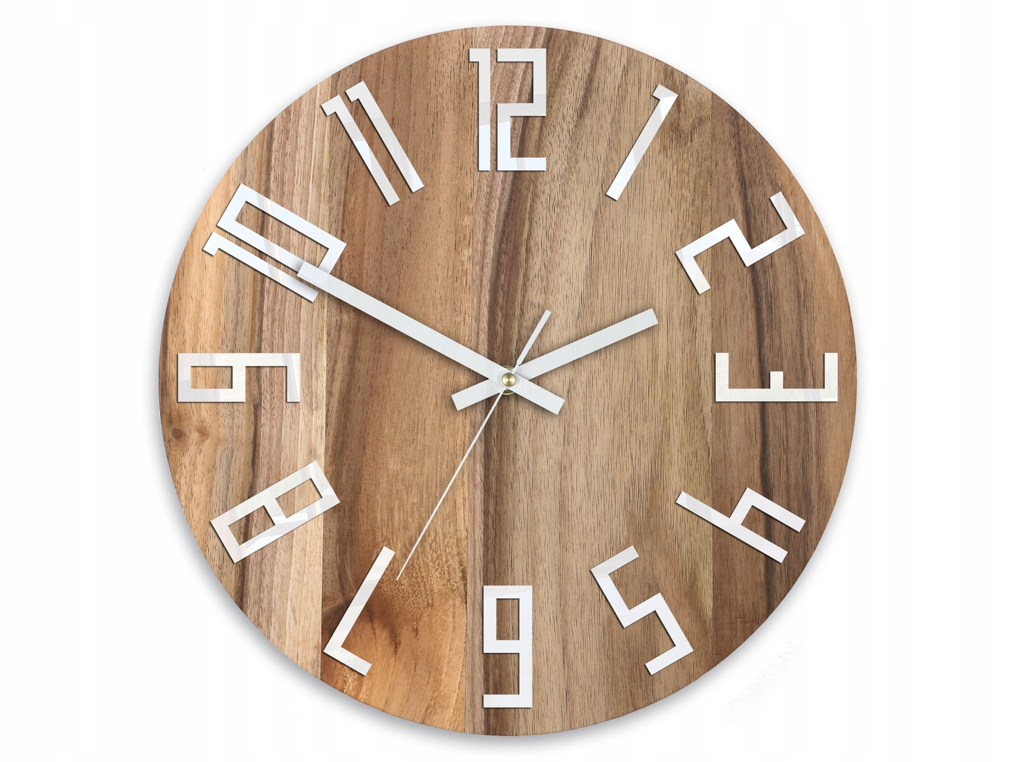 Modernus sieninis laikrodis. Jo paprastumas ir grožis žavi kiekvieną, kuris į jį žiūri. Masyvus unikalus riešutmedžio laikrodis – kiekvienas gabalas skirtingas. Puikiai dera prie bet kokio interjero, tai ne tik laikrodis, bet ir graži Jūsų svetainės, kambario ar biuro puošmena. Puikiai tinka kaip dovana. Kiekviena kopija supakuota elegantiškoje dėžutėje.